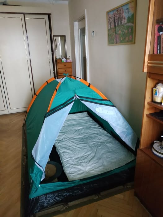 Photo courtesy of a friend from Pechersk: they haven’t had heating since January 9; the temperature outside is now -13°C. You can heat a tent with ceramic pots filled with boiling water (provided there is a gas stove).
