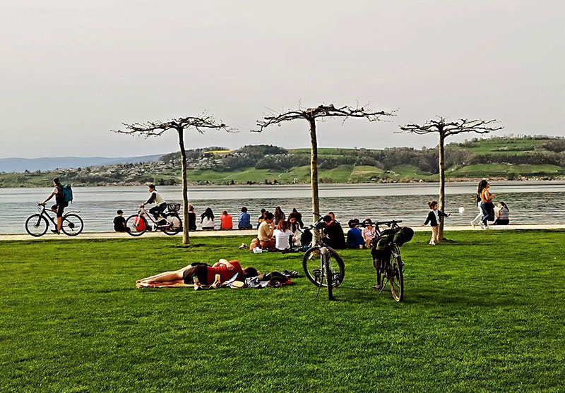 Unten am Wasser erwartet dich ein Stück Ferien: Spazierwege, Eisdielen, Ruderboote und ganz viel Platz zum Durchatmen. Im Sommer kannst du baden, einfach auf dem Gras liegen – oder aktiv werden: